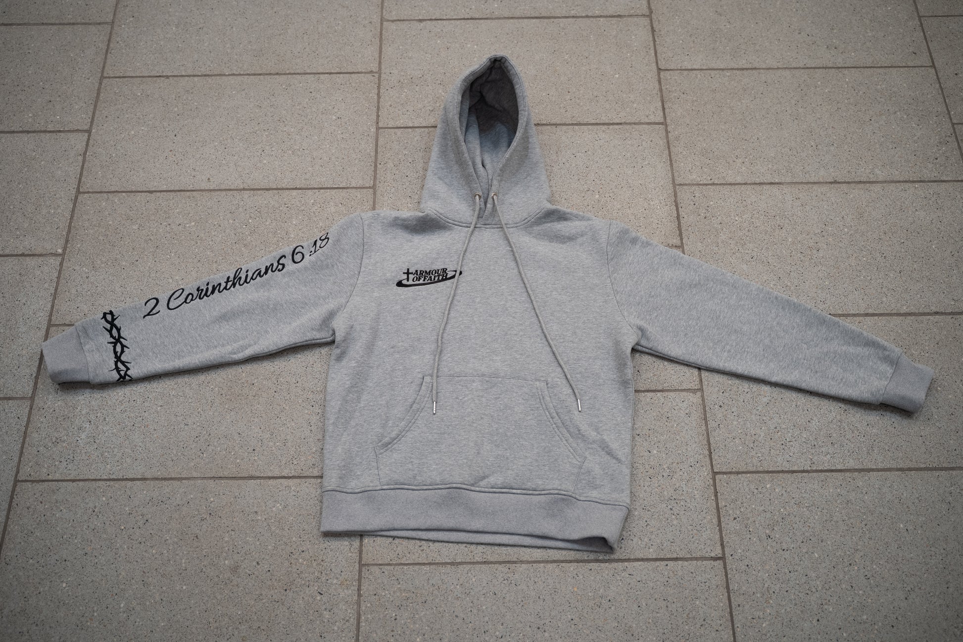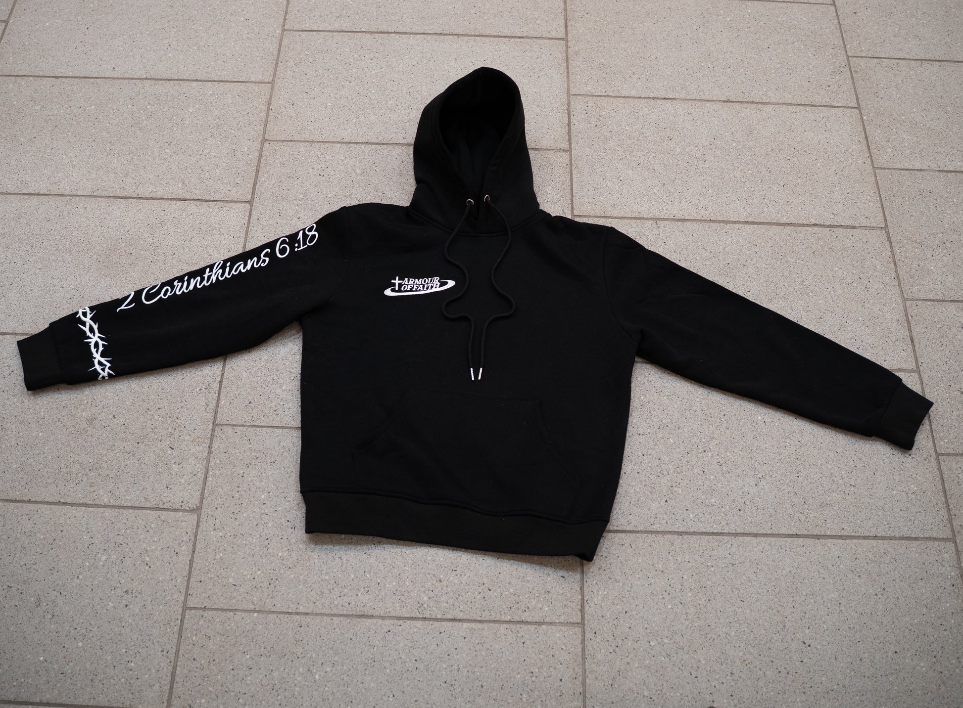 The Armour of Faith " child of God " hoodie - a bold and meaningful design rooted in Scripture. Featuring 2 Corinthians 6:18 on the back , this hoodie speaks life and truth: